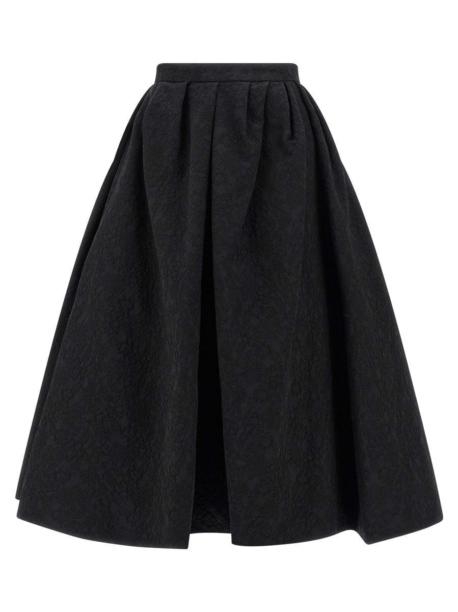 'Full' cotton jacquard midi skirt, crinoline underskirt, crinkled waistband, back zip and hook closure