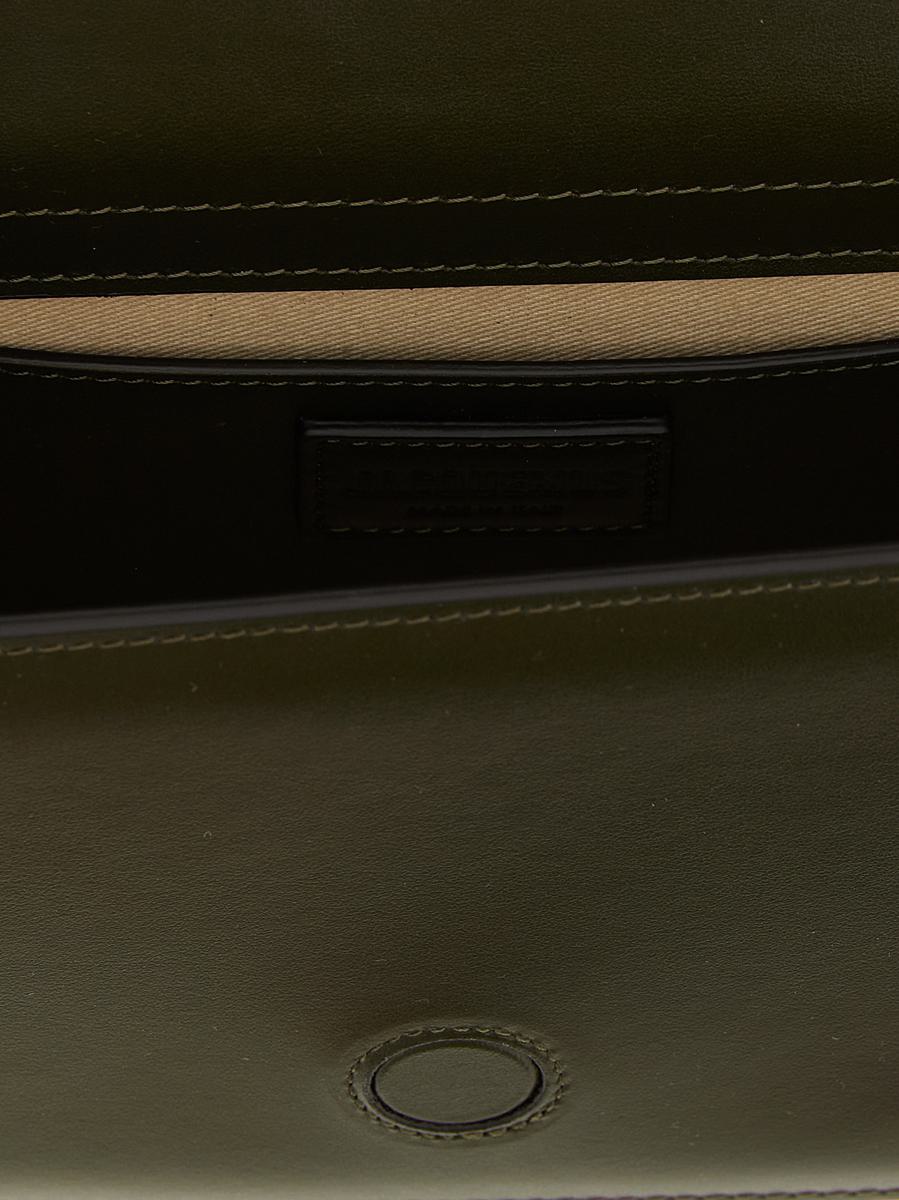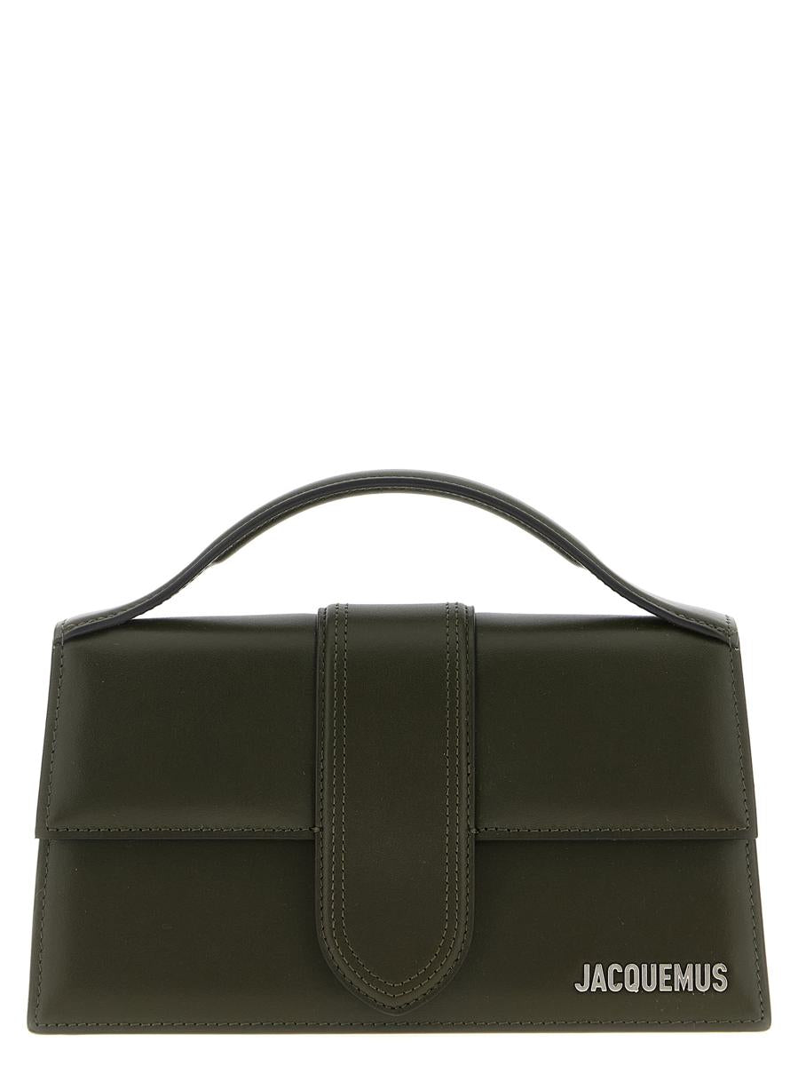 'Le Grand Bambino' leather handbag with magnetic flap closure, front metal logo appliqué, fixed handle, adjustable and removable shoulder strap